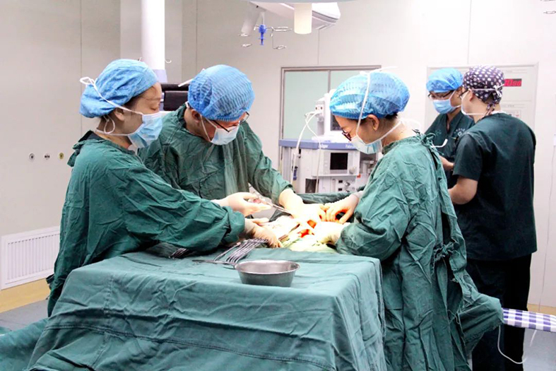妇产科医护人员一边建立双静脉通路,补液、留置尿管、备血、心电监护、吸氧、下病危通知、术前谈话、术前准备……,一边电话联系手术麻醉科、检验科、输血科做好急诊手术和配血准备。