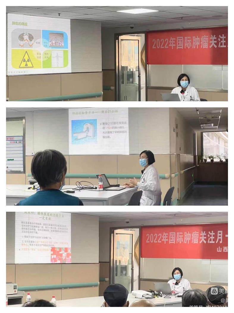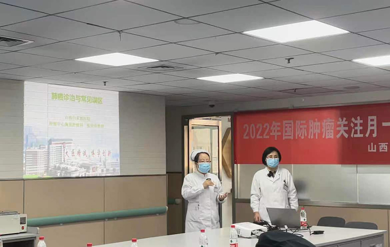 肺癌发病率和死亡率,在世界范围内均居恶性肿瘤首位。世界肺癌联盟在2001年将每年的11月确定为“国际肺癌关注月”,旨在呼吁政府机构及广大社会人员重视肺癌的预防,提高人们对肺癌的防癌、抗癌意识,普及肺癌的规范化诊疗知识。山西白求恩医院肿瘤中心胸部肿瘤科每年都会开展一系列公益活动,包括正念减压团体辅导、医患互动、多学科联合义诊、线上直播交流等,做了大量肺癌防治知识普及工作。(郭翠)