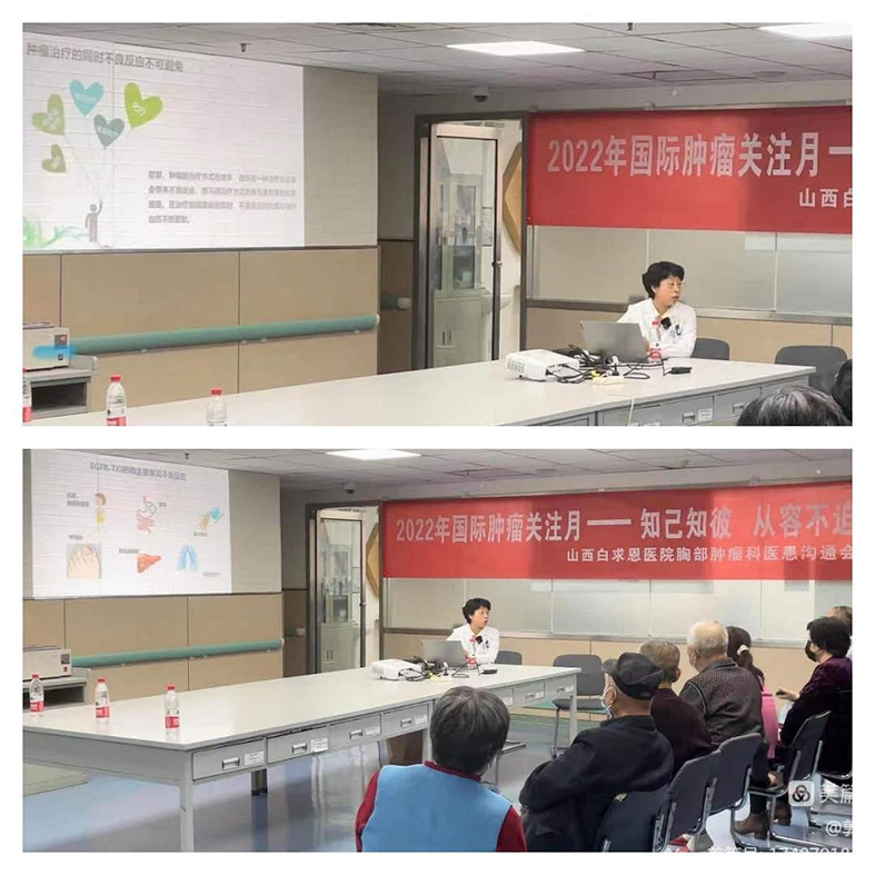▲山西白求恩医院肿瘤中心胸部肿瘤科医患沟通会现场。