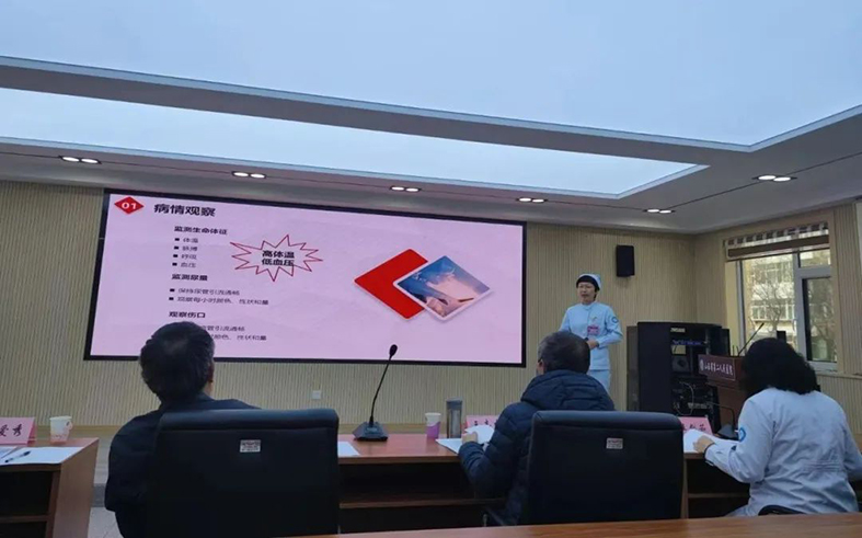 竞赛采用“现场讲课+专家点评”的形式进行。该院泌尿外科、肾移植透析中心一区、二区和职业病中毒科等科室共9名医护人员,根据自身情况选择一门课程的某个知识点或教学环节,提供配套教案文本,进行10分钟PPT课程讲解。专家评委会从教学内容、教学组织、教学能力和教学态度等几个方面,对参赛者进行细致点评并打分,同时提出指导意见。