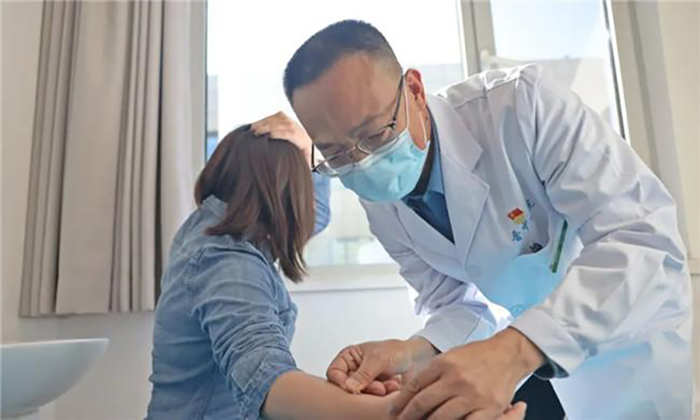 当日,要金元耐心地接诊了一位自称有便秘症状的患者,仔细诊查其人迎、寸口、趺阳部的脉象,运用三部六病理论,在辨证后为其对症开具了汤药,并对患者进行健康宣教,针对患者体质告知其日常保健按摩的办法。还为一位患有桡骨茎突腱鞘炎的患者实施小针刀疗法。作为治疗该病症的有效方法,小针刀技术具有损伤小、见效快、疗程短、不易复发等优势,治疗效果明显,受到患者好评。(南东妮 郭兴政)