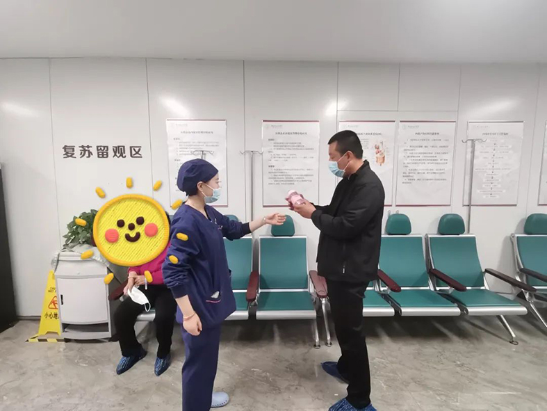 当日,恰逢雷宇峰专家日,消化内镜全体人员同往常每个专家日一样进行着紧张有序的工作。在工作结束之后,雷宇峰与大家共同庆祝消化内镜中心一周年生日。之外,他们在每位患者检查结束后,向他们赠送纪念礼品,共同庆祝科室生日。