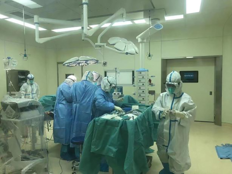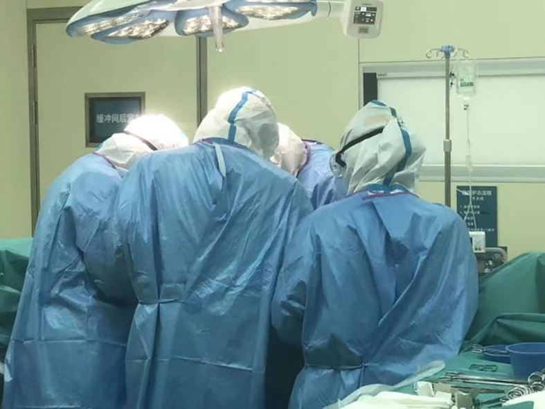 面对不利手术条件,王宇团队克服困难,成功为患者实施了膀胱破裂修补术,结束时已是深夜12点。大家脱下防护服后发现,穿在里面的洗手衣全都湿透了,而且有人出现头晕缺氧的症状。