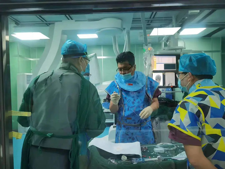 11月9日上午,在脑病科介入手术团队侯杰、秦玉瑾、田帅的通力配合操作下,经过1个多小时的全力奋战,手术顺利完成。狭窄的血管得到良好再通,一枚小小的支架,使年过八旬的邢大爷重获新生,不仅提高了日常的生活质量,更是减少了日后再次发生卒中的风险。