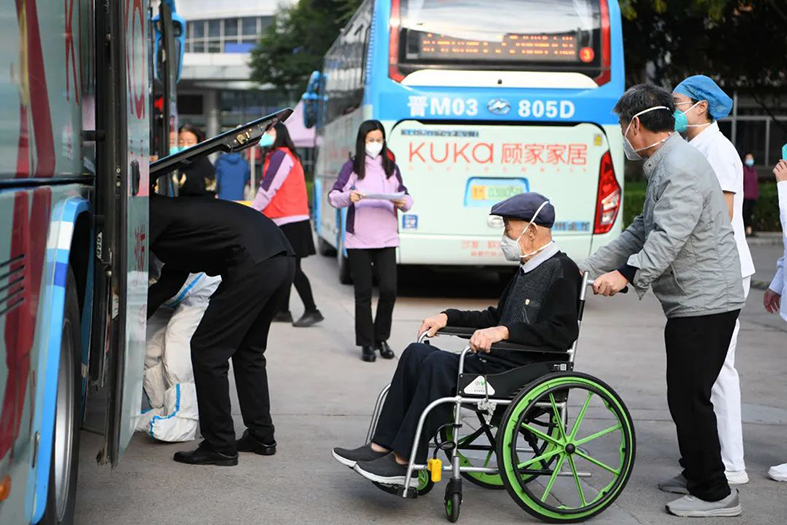 市民张大爷因为合并脑出血后遗症需要进行透析治疗,静默管理时,他儿子所在的小区被划为中风险区域,大爷只好一人拄着拐杖自行往返医院,我们的医护人员得知后,安排人员每到透析日都在医院门口,将大爷接扶至科室并安置好治疗,发信息让家属放心。为了能加快康复,医护人员每天都扶着大爷进出。这些细微处的贴心举动,最动人心弦,拉进着医患的距离。在内科病房、外科病房、各治疗室、检查科室,这样医患齐心共抗疫的温暖画面一一展现,润心暖心的感人故事在这里深情讲述。