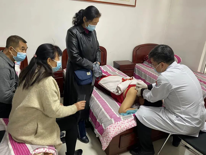 ▲中医、康复医学科主任免费为居民进行小针刀治疗
