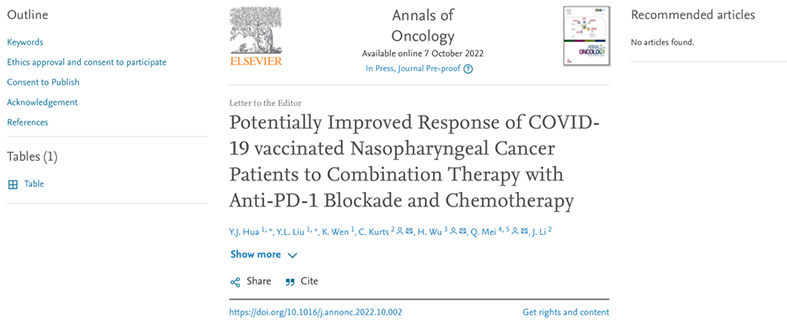 近日,山西省医院协会理事单位——山西白求恩医院 同济山西医院党委书记、院长吴华教授和科研部负责人兼肿瘤中心主任梅齐带领的研究团队在国际顶级期刊《Annals of Oncology》上发表文章(短文形式),影响因子51.769。吴华教授和梅齐副主任医师(均为同济常驻山西白求恩医院 同济山西医院专家)为共同通讯作者,山西白求恩医院为第一单位。这是山西白求恩医院 同济山西医院与湖北省华中科技大学同济医学院附属同济医院共建国家区域医疗中心以来,在科研联合攻关方面取得的又一重大突破,尚属院内首次、省内首项。为进一步促进山西白求恩医院 同济山西医院科研创新能力高质量提升、深入推进晋鄂两省两院高质量共建,提振了信心。