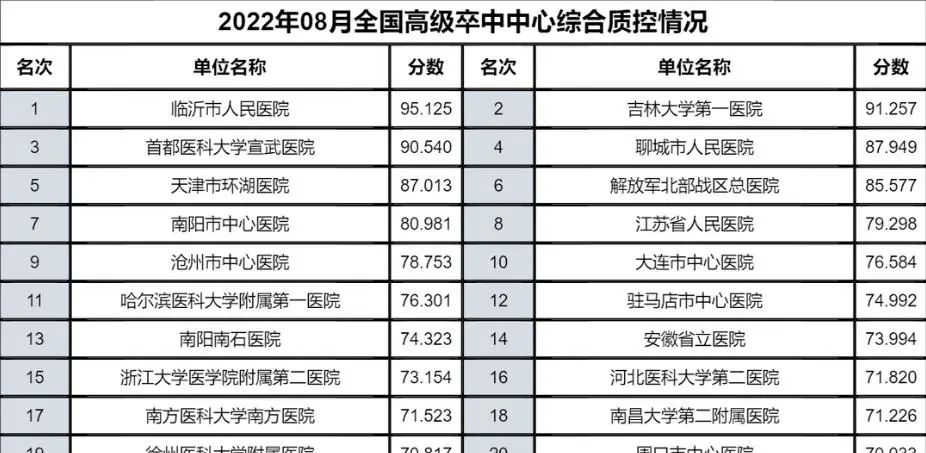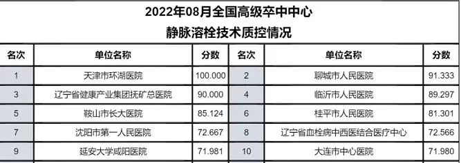 近日,2022年8月全国高级卒中中心综合质控排名、静脉溶栓技术质控排名出炉。山西省医院协会理事单位——临汾市中心医院高级卒中中心全国排名第79名、山西省第3名,静脉溶栓技术全国排名第19名、山西省第1名。