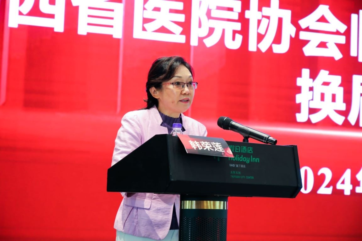 ▲山西省医院协会秘书长韩荣莲通报临床检验管理委员会换届筹备工作情况