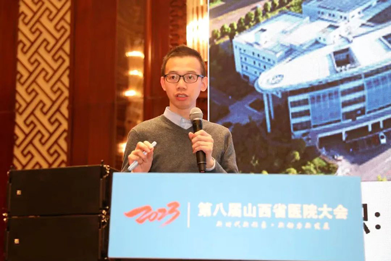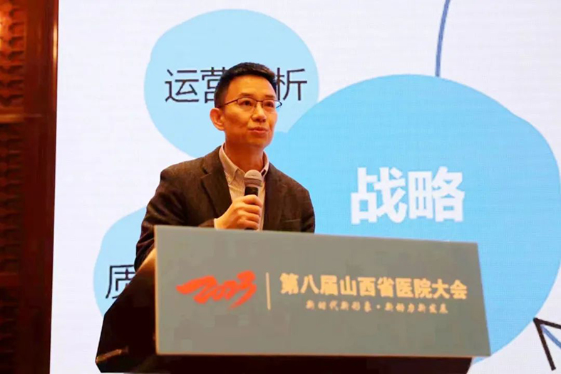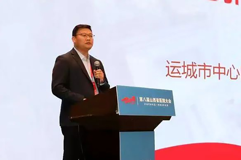 ▲山西省汾阳医院院长郭建平作《围绕公立医院高质量发展的智慧医院建设》报告