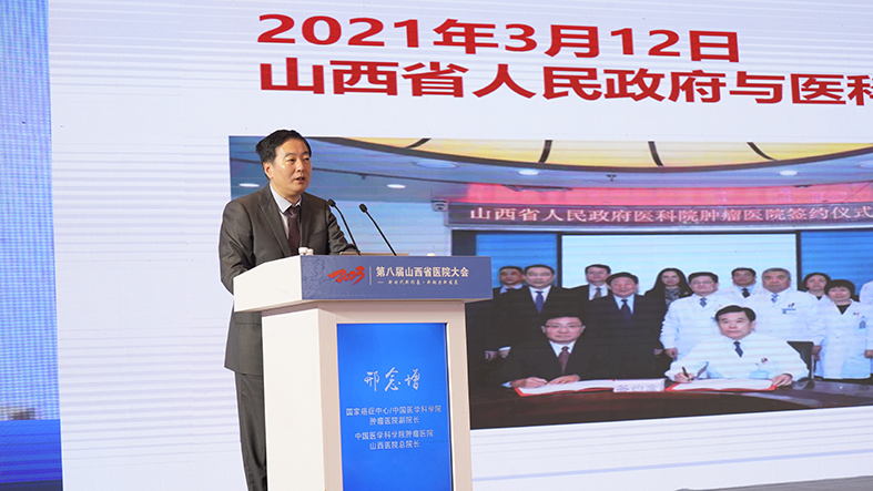 ▲中国医学科学院肿瘤医院山西医院、山西省肿瘤医院原总院长邢念增教授作《建设国家区域肿瘤医疗中心提升山西肿瘤防治水平》报告