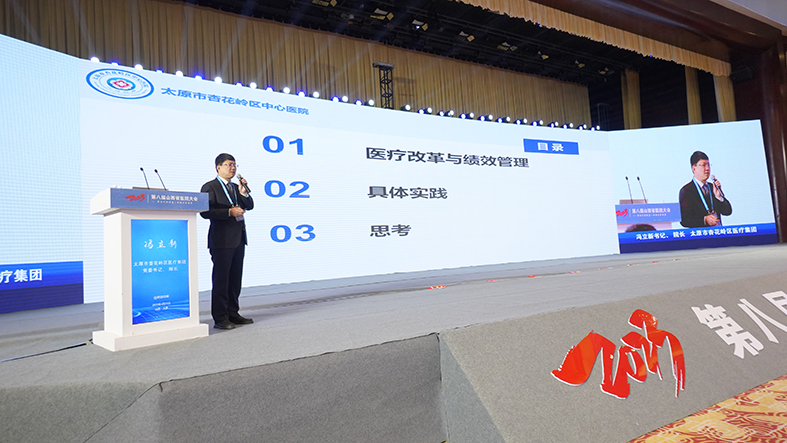▲太原市杏花岭区医疗集团党委书记兼院长冯立新作《聚焦高质量发展 共谋医院建设新时代——绩效考核管理工具在医院发展中的运用》报告