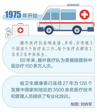 山西省1975年开始承担援外医疗任务,援外医疗队在喀麦隆、多哥、吉布提3个国家5个医疗点工作,每个医疗点都有1名至2名中医医生。50年来,援外医疗队为受援国提供中医诊疗150多万人次。省卫生健康委国际交流合作处处长李晓表示,“授人以鱼不如授人以渔”,援外医疗队在受援国积极传播中医药诊疗技术,通过临床岗位带教,已将受援国医院10多人培养成能独立开展中医诊疗的中医大夫。同时,援外医疗队走进大学校园、走进社区积极传播中医药传统文化,开展中医知识讲座、举办中医培训班,宣传中医治未病等养生保健知识,进一步弘扬了中华传统文化。