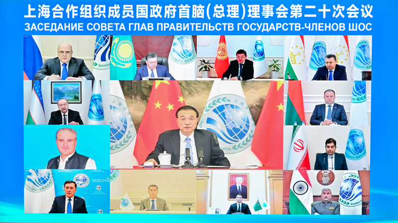 11月25日,国务院总理李克强在北京人民大会堂出席上海合作组织成员国政府首脑(总理)理事会第二十次会议。会议以视频方式举行。